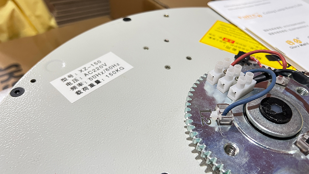5、接通吊燈旋轉(zhuǎn)升降機的外線電源。